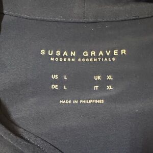 Susan Garver Navy Long Sleeve V-Neck Top Size Large