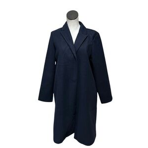 NWOT Zara Lapel Collar Felt Texture Long Open Front Coat NAVY