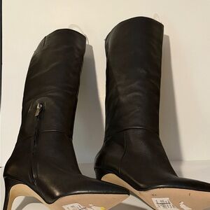 Marc Fisher LTD Quinnie Black Leather Knee High Stiletto Heeled Boots Size 6