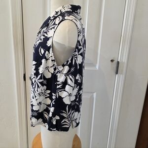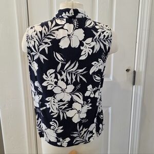 Caribbean Joe Navy and White Floral Blouse
