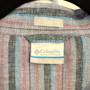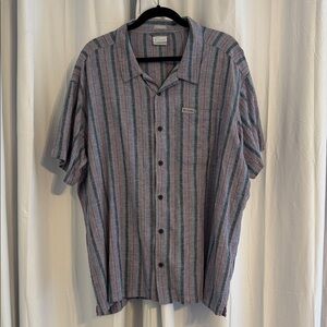 Columbia Linen Blend Short Sleeve Camp Shirt Mens XXL Gray Blue