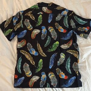Stylish button-down with multicolor feather design. Perfect for casual wear.