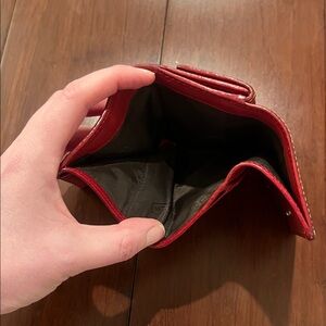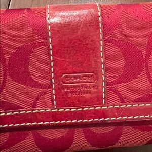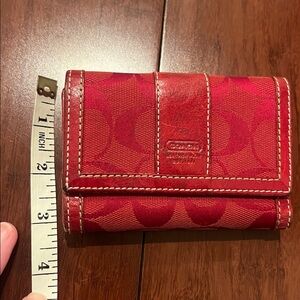 Red Coach signature bifold wallet featuring the brands iconic monogram.