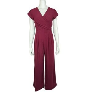 Gal Meets Glam Burgundy Wrap VNeck Jumpsuit Tie Back Wide Leg Size 2 Elegant