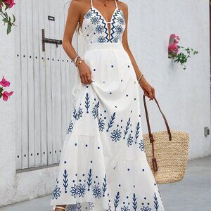 Multicolor Boho Women's Printed Cami Maxi Dress Hawaiian Style
