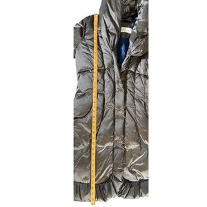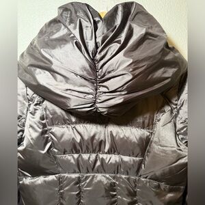 T Tahari 70% Down Long Puffer Coat M Taupe Sculptural Collar Luxe Winter Spring