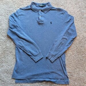 Polo Ralph Lauren Long Sleeve Polo Mens Medium Blue Heathered Cotton Knit Pony