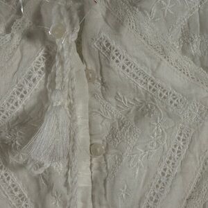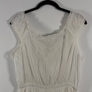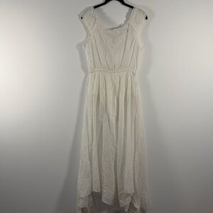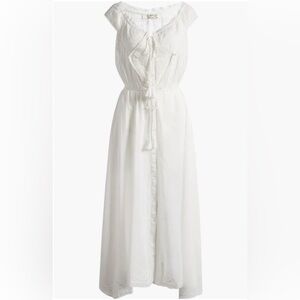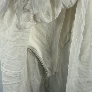 NWOT Free People Intimitly Country Charm Maxi Bodysuit - new without tags/ never worn - sz: s - white This lacy bodysuit is a versatile dream with a flowy handkerchief-hem skirt that allows you to wear it as a sheer dress or with your favorite bottoms. Front button closure; snap closure Split neck with ties Cap sleeves Drawstring waist Built-in bodysuit 100% cotton with 96% cotton, 4% spandex contrast