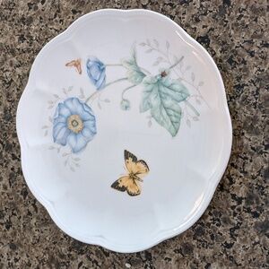 LENOX Butterfly Meadow Monarch 9" party plate ladybug blue flowers monarch butterfly. Adorable scalloped edge.