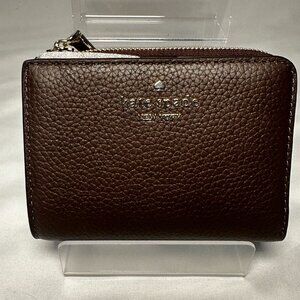 Brand new Kate Spade New York pebbled leather zip around wallet in rich brown with gold hardware.