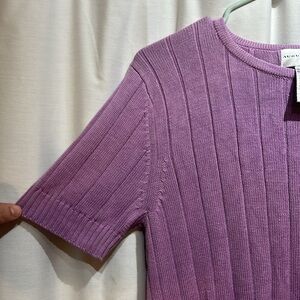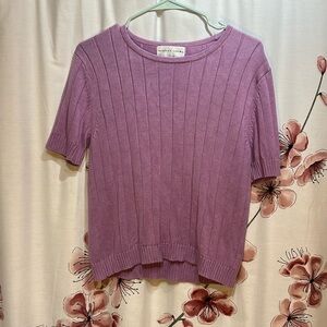 AUGUST SILK Purple Short Sleeve Knit Top Silk/Cotton Blend Size Large