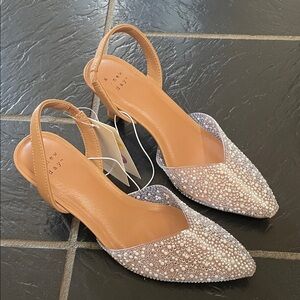 A New Day Isabel Embellished Slingback Glitter clear kitten Heels NWT size 6.5