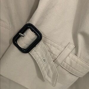 The Burberry Sandlin Trench Coat in beige is the ultimate expression of timeless British style, rooted in the heritage of the original trench designed by Thomas Burberry. Featuring a classic double-breasted silhouette with epaulettes, a gun flap, and an adjustable belted waist, it offers effortless elegance for any occasion. Reimagined as part of Burberry’s modern trench collections, this coat remains a wardrobe essential for women who appreciate iconic design with enduring appeal. Burberry Sandlin Trench Coat in Beige Polyester Condition: Excellent Signs of wear: No visible sign of wear., Unused or used once, but as good as new. Packaging: None Color: white Material: Polyester Size: US | 6 Measurements: Length: 33.07 in; Chest: 18.5
