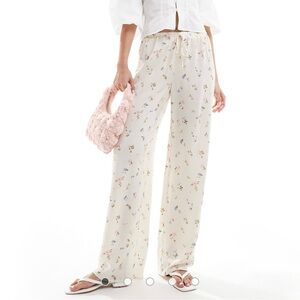 ASOS DESIGN Linen-Look Ditsy Floral Wide Leg Pants Cream M High Rise