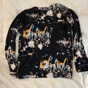 This trendy long sleeve shirt features a unique abstract design in black. Perfect for adding a touch of style to any outfit.