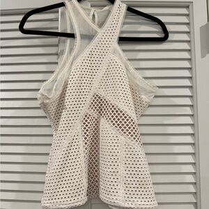 Elegant cream sleeveless top by BCBGMaxAzria. Ideal for versatile styling.