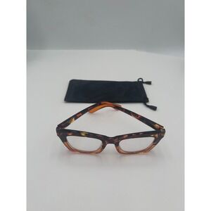 Tortoise Shell Reading Glasses Rectangular Cat Eye Frames Brown Amber with Pouch