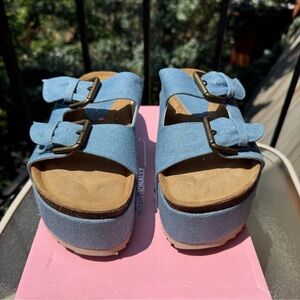 New Free People Rule Breaker Flatform Sandal Shoes Platform Denim Blue