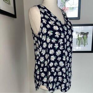 Old Navy “Loves Me Loves Me Not” V-Neck Sleeveless Tank Top. Curved hemline. Key hole back. Daisy Print.