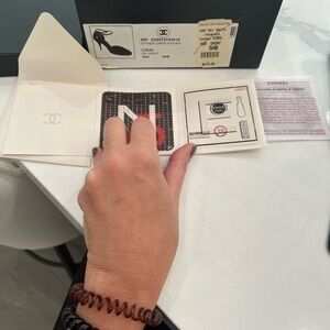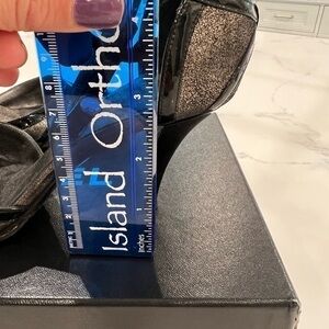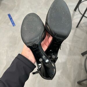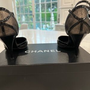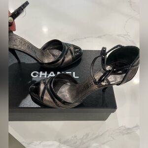 CHANEL DARK GREY METALLIC & patent leather ankle strap heels
