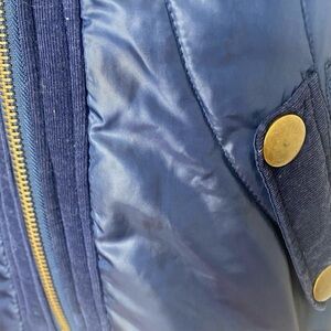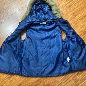 3/$25 Lola Women's Navy Quilted Zip Sleeveless Faux Fur Hooded Vest Size Medium