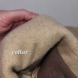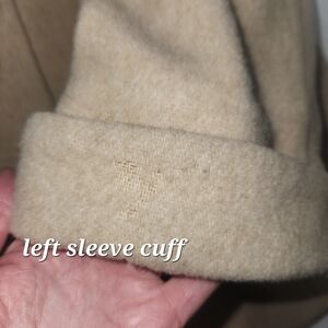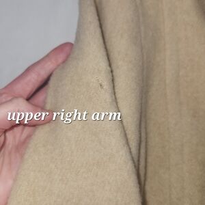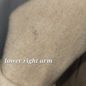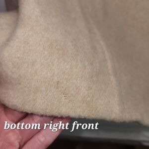 This coat has light wear reflected in the photos and price. There are a few small spots, but they are subtle and not noticeable unless you’re specifically looking for them.