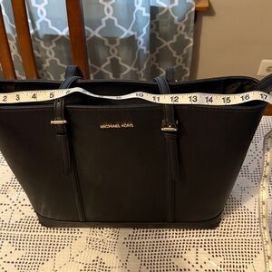 Sleek and stylish tote by Michael Kors. Features a classic black design with signature MK charm. Ideal for everyday use.