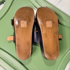 Dolce Vita Black Platform Slide Sandals Gold Buckle Size 7