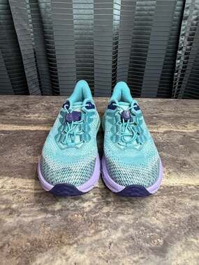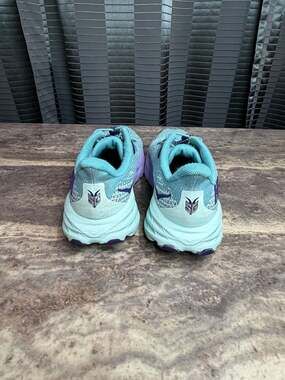 Hoka One One Speedgoat 5 Youth Trail Running Shoes in Blue and Purple.