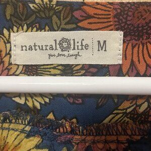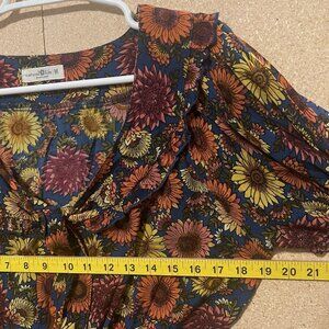 Natural Life Crop Top Smocked Floral Short Sleeve Size Médium Ruffle Shirt Boho cottage bohemian