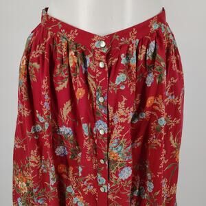 Ralph Lauren Red Floral Button Front FLAWED Midi Skirt 6 Cottagecore Prairie