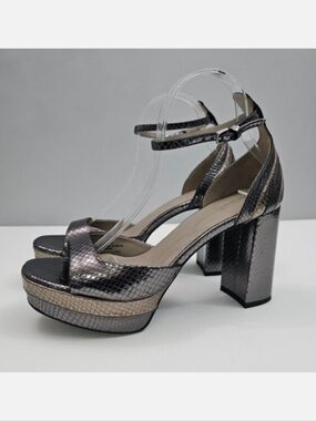 AllSaints Tia Platform Heel Sandal Womens 10 Metallic Bronze Gold Gray Embossed