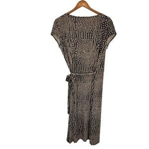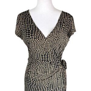 DressBarn Brown Black Midi Vneck Wrap Short Sleeve Animal Giraffe Print Dress