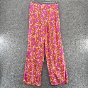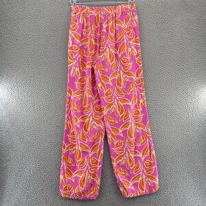 Sincerely Jules Pants Womens Small Pink Orange Floral Linen Blend Straight Leg