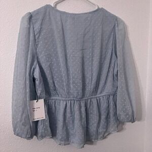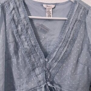 Japna Long Sleeve Sheer V-neck Lace Detailing Tie Light Blue NEW Size Large