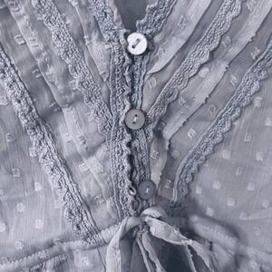 Japna Long Sleeve Sheer V-neck Lace Detailing Tie Waist Light Blue NEW Size L