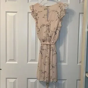 Express Baby Pink Mini Dress Tie Waist Flutter Sleeves Floral Keyhole Size S