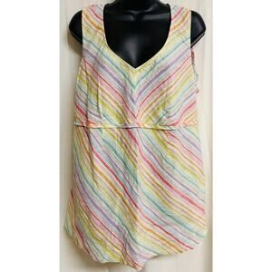 Motherhood Maternity Women Linen Top Blouse V-Neck Sleeveless Stripe Pink New