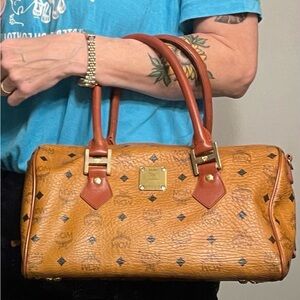 MCM Authentic Vintage Tan and Brown Visetos Handbag