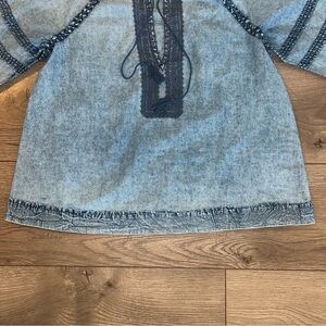 Faherty Blue Denim Women's Blouse with Tassels Size Small Organic Cotton