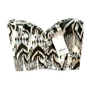 NWT Misa Los Angeles Ikat Print Bustier Crop Top Olive & White XS