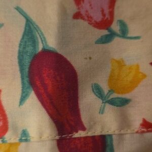 Great pre-owned condition. No holes, a couple of tiny stains towards bottom. Pockets at waist. No size tag, I wear a medium and it fits me. Measurements in pics.