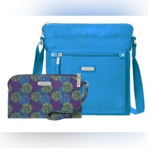 Baggallini Go Bagg adjustable crossbody bag in aqua skylight. Features:
