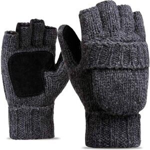 Half-Finger Flip Cover Gloves Wool Blend Knitted Winter Warm Gloves Men Women
