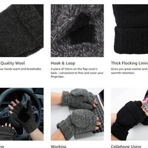 【Features】Dual-function gloves - With extra Mittens Cover Cap, capable of serving as Half Finger mittens or Full-finger gloves, allows you to freely choose the suitable wearing, Keep your hands warm and fingers free during cold ,allows you flexibily to perform delicate work.