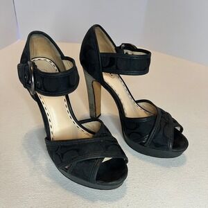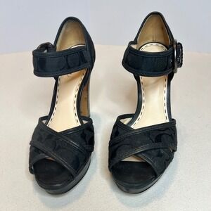 Keywords: Coach, Designer, Signature, Monogram, Y2K, Platform, Peep Toe, Buckle