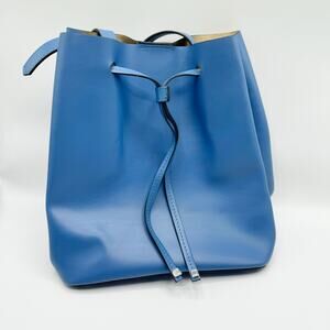 Lodis Blue Leather Drawstring Crossbody Bag