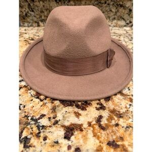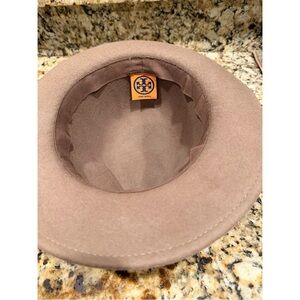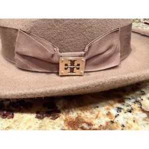 Tory Burch Wool Fedora with Ribbon/metallic Logo accent in a khaki/tan color