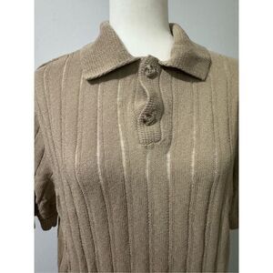 Zara ribbed knit cotton blend polo top size L