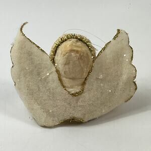 Vintage Mica Angel Ornament Gold Tinsel Star Puffy Felt Wings 3" Christmas Decor